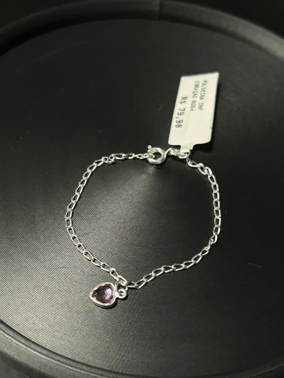 PULSEIRA INF CORAÇAO ROSA EM PRATA925